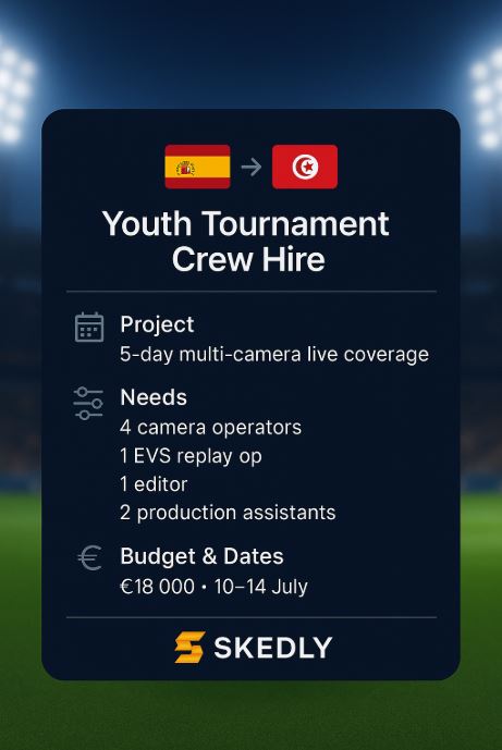 Our engine alerts verified pros who fit your spec by role, gear, and location. They pitch back with rates and reels.